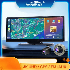 NAUJAS, AUKŠTOS KOKYBĖS OBDPEAK 4K UHD 10.26" COLIŲ AUTOMOBILIO JUTIKLINIS IPS EKRANAS SU BELAIDŽIU ANDROID AUTO, CARPLAY, 4K REGISTRATORIUMI, GALINE KAMERA, WI-FI / BLUETOOTH, FM, AUX IR GPS NAVIGACIJA – VISKAS VIENAME ĮRENGINYJE PATOGIAM IR SAUGIAM VAIRAVIMUI