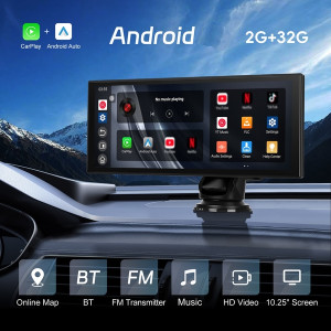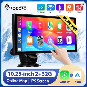 NAUJAS, AUKŠTOS KOKYBĖS PODOFO ULTRA PRO 10.25" COLIŲ 2+32GB AUTOMOBILIO JUTIKLINIS EKRANAS SU BELAIDŽIU ANDROID AUTO, CARPLAY, 4K REGISTRATORIUMI, GALINE KAMERA, WI-FI / BLUETOOTH, FM, AUX IR GPS NAVIGACIJA – VISKAS VIENAME ĮRENGINYJE PATOGIAM IR SAUGIAM VAIRAVIMUI